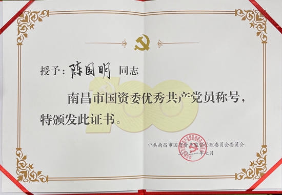 在隆重紀(jì)念中國(guó)共產(chǎn)黨成立100周年之際,南昌市國(guó)資委和南昌旅游集團(tuán)于近日對(duì)一批來(lái)自各條工作戰(zhàn)線上的優(yōu)秀黨員和優(yōu)秀黨務(wù)工作者及先進(jìn)基層黨組織進(jìn)行了表彰,獎(jiǎng)勵(lì)他(她)們?cè)诟髯缘墓ぷ鲘徫簧?/font>履職盡責(zé)創(chuàng)先進(jìn)、立足崗位爭(zhēng)優(yōu)秀,在推動(dòng)企業(yè)高質(zhì)量發(fā)展中充分發(fā)揮戰(zhàn)斗堡壘和先鋒模范作用。其中,公司陳國(guó)明同志榮獲市國(guó)資委“優(yōu)秀共產(chǎn)黨員”稱(chēng)號(hào),公司黨委被評(píng)為南旅集團(tuán)“先進(jìn)基層黨組織”,黨員職工胡穎明、徐小蘭、王昕、王貞同志獲南旅集團(tuán)“優(yōu)秀共產(chǎn)黨員”稱(chēng)號(hào)。