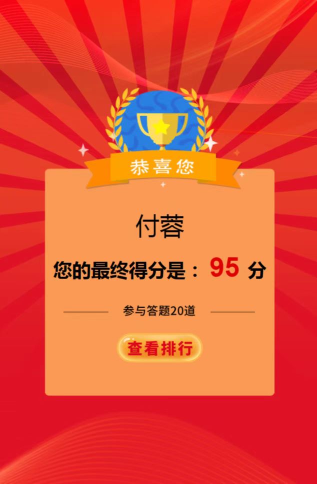 該競賽是以“傳承紅色基因 守牢紀法底線”為主題,通過線上學習,線上答題的形式,以考促學,以考驗效,營造了學習“四史”的濃厚氛圍,重點教育黨員干部深刻認識“兩個確立”的決定性意義,增強“四個意識”、堅定“四個自信”、做到“兩個維護”。同時,把答題活動作為加強黨員干部紀法教育的重要載體進行落實,激發(fā)黨員干部學習紀法知識的積極性、主動性,牢固樹立紀法意識,自覺嚴守紀律規(guī)矩、不逾紀法底線,廉潔從政從業(yè)、規(guī)范行權(quán)用權(quán)。