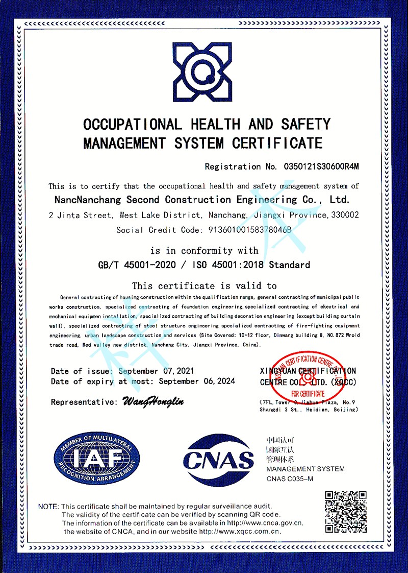 職業(yè)健康安全管理體系認(rèn)證證書